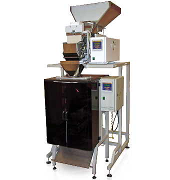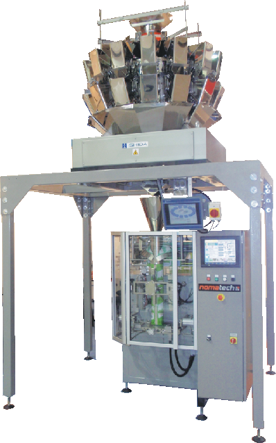 - Упаковочные машины вертикального типа. Они используются для расфасовки продукции в пакеты, свариваемые термическим методом. Это оборудование одновременно отвечает за дозировку, упаковку и запаивание пакетов.